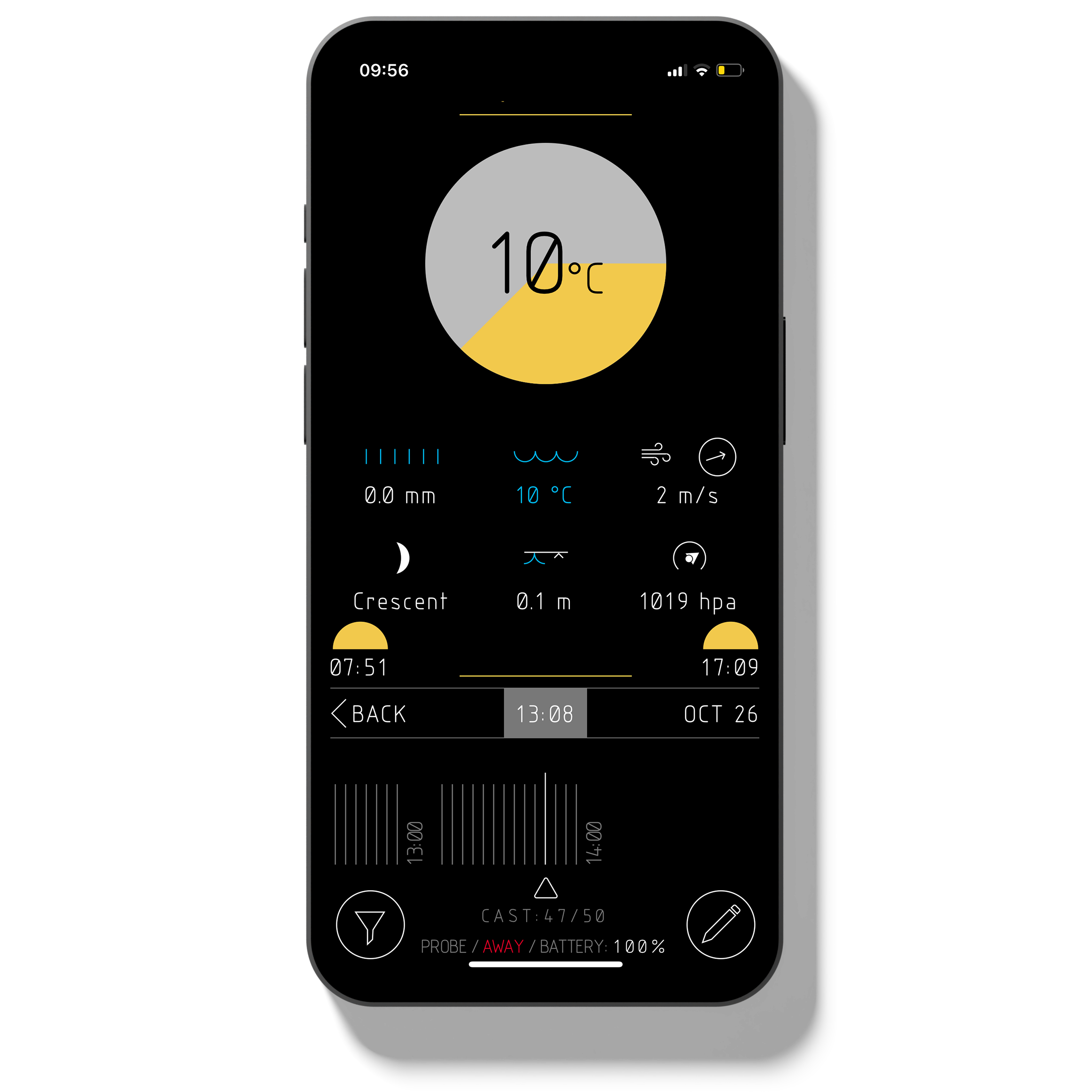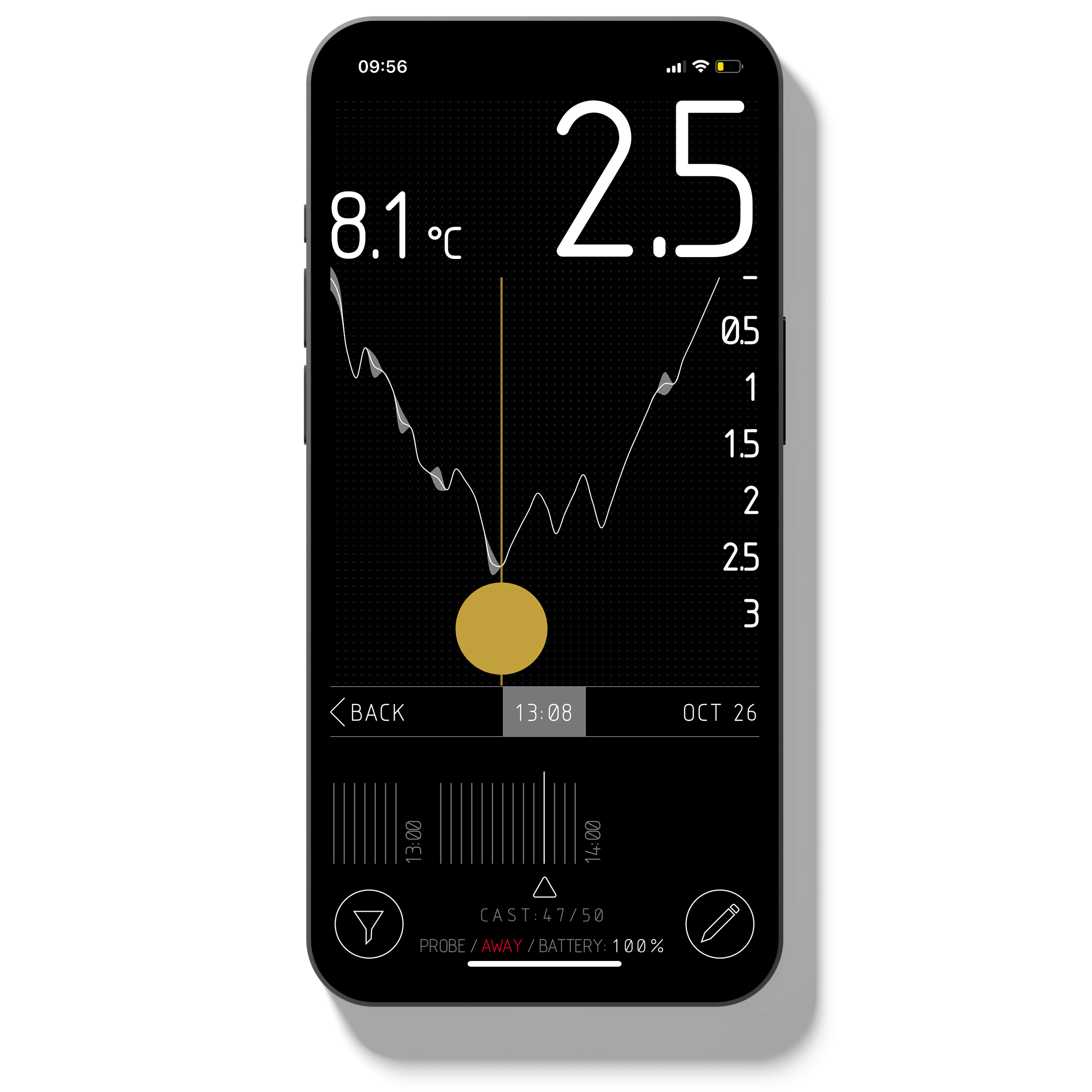 In addition to the unique underwater data from the PROBE, the app will automatically log your fishing sessions complete with weather data, maps and your own manual notes.